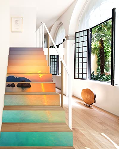 FLFK 3D Alba Mare Scenario Paesaggio Autoadesiva Le scale Alzate adesivo Vinile Scala Adesivi decalcomanie 39,3 pollici x7,08 pollici x 13 pezzi