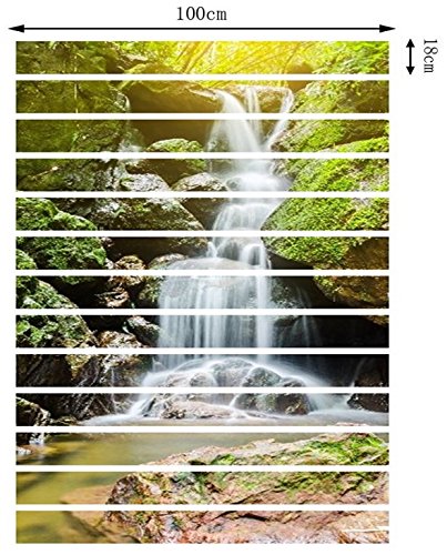 FLFK 3D Luce del sole cascata Autoadesiva Le scale alzata Adesivi Vinile decalcomania adesivi per scale 39,3 pollici x7,08 pollici x 13 pezzi
