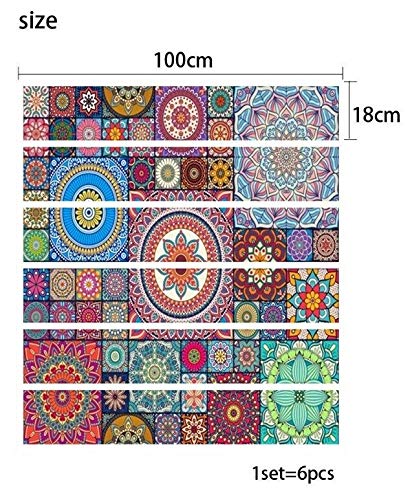 FLFK Messicano Adesivi per Piastrelle Impermeabile PVC Autoadesivo Decorazione Adesivi Pavimento per Bagno Cucina Parete 39,3 Pollici x7,08 Pollici x 6 Pezzi