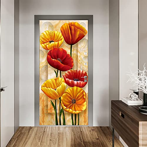 FLFK 3D Pittura ad olio floreale Autoadesiva Adesivo per porta Murale Foto Adesivo da parete decalcomania Salotto Camera da letto arredamento 30.3"x78.7"