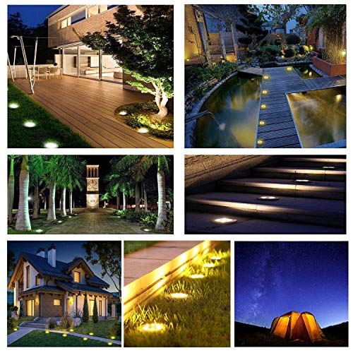 【Alto livello di impermeabilità】 Luce a disco solare impermeabile e durevole realizzata con un guscio della lampada in acciaio inossidabile abbastanza resistente e 8 LED potenti. Il design a prova di umidità assicura che le luci a disco all'aperto rimangano inalterate anche dopo un forte acquazzone.
