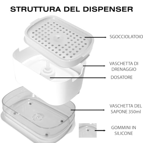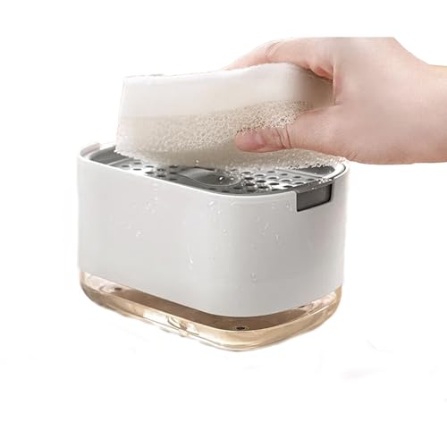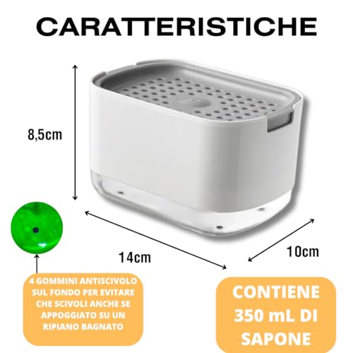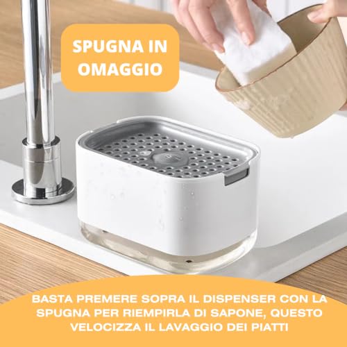 DIMINUISCE LO SPRECO DI SAPONE LIQUIDO - Pompa il sapone nella spugna direttamente, premendo sopra il dispenser sapone, lasciandoti sempre una mano libera per mantenere ciò che stai lavando. Questo erogatore sapone cucina con porta spugna velocizza le operazioni di pulizia e permette di usare solo il sapone che ti serve senza inutili sprechi!!