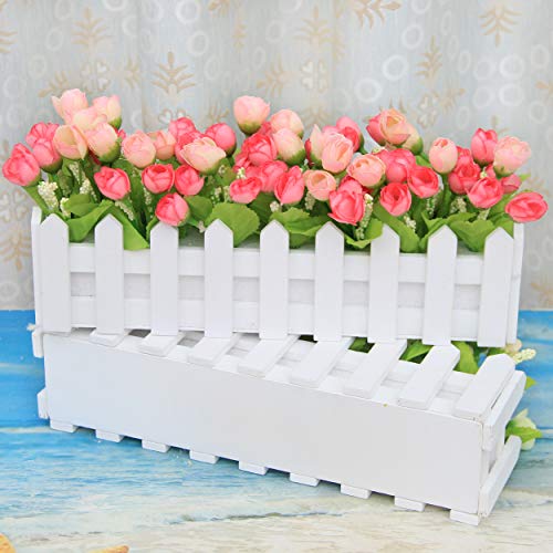 Flikool Artificiale Piante in Vasetto Artificial Potted Plant Artificiali Fiore Rose Faux Erba Verde Falso Bonsai Verdura Decorazione Ornamenti con Recinto Casa Balcone Ufficio Deco - Pink
