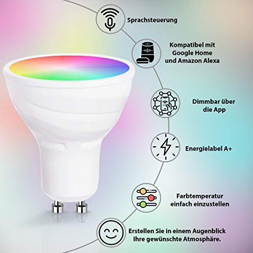 Controllo vocale: con Amazon Alexa o Google Assistant è possibile controllare facilmente le lampade tramite voce. Crea una vera esperienza di casa intelligente e nomina la lampadina intelligente e poi comunica semplicemente tramite il nome quando si dà un comando vocale. È anche possibile creare gruppi per parlare più lampadine intelligenti WLAN con un unico comando.