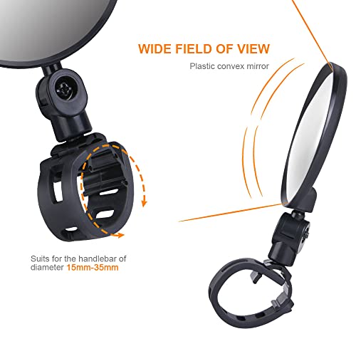 【AMPIA APPLICAZIONE】: questo specchietto per bicicletta è adatto per manubri da 15 mm a 35 mm (diametro interno). È adatto per il montaggio su entrambi i lati del manubrio, ideale per la maggior parte delle bici, come bici da strada, mountain bike, bici elettriche, bici ibride, bici da città, moto, e-bike, e-scooter, ecc.