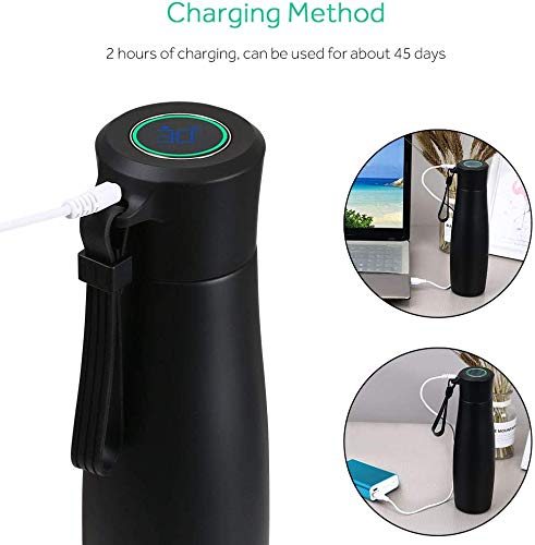 Flintronic Bottiglia Acqua, Ricaricabile LCD Termiche Borracce, Isolamento Sottovuoto Coppa da Viaggio, Borraccia Termica 400ML(1*Cavo USB e Borsa per Bottiglia Inclusi) per Scuola, Sport, Yoga