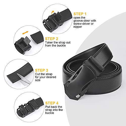 Flintronic ® Cintura da Uomo in Pelle con Fibbia Automatica, Moda Cintura a Cricchetto 3.5cm * 130cm, con Portachiavi e Confezione Regalo