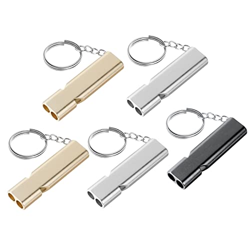 Flintronic Fischietto Emergenza, 5Pezzi Dorato d'Argento Fischietto Forte Fischietto in Metallo Sopravvivenza Fischietti Emergenza per Caccia Escursionismo Canottaggio All'aperto Campeggio Sport