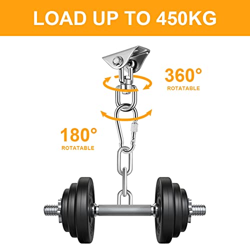 【AMPIA GAMMA DI USI】: adatto a molte occasioni. Adatto non solo per interni, ma anche per esterni. Può essere fissato al soffitto oa travi in legno. Anche il miglior accessorio per appendere cinghie e allenatori di resistenza, altalene per amache, anelli olimpici, corde da battaglia, altalene per yoga, attrezzature da boxe.