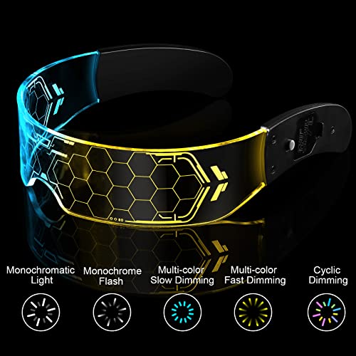 Flintronic Occhiali LED Party, Occhiali da Festa LED, Cyberpunk Occhiali LED, 7 Colori 5 Modes Occhiali Luminosi, Colore Regolabile per Halloween Festa Cosplay Discoteca Bar Festival Musicale