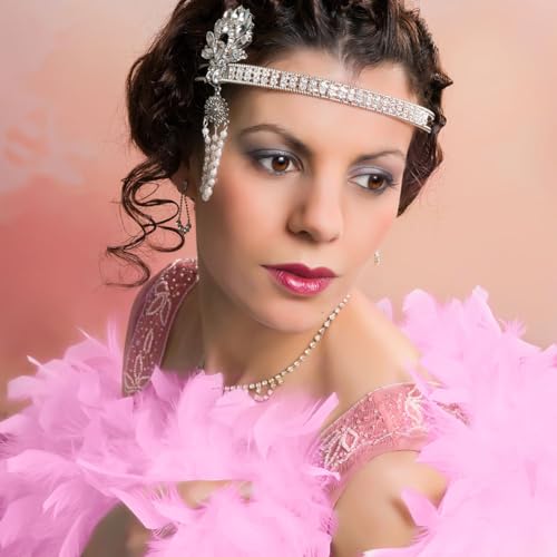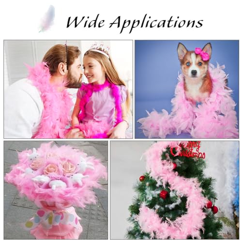 Flintronic Boa di Piume, 2 M Boa di Piume Colorate con Occhiali da Sole, Piuma Sciarpa, Decorazione di Boa di Piume di Tacchino per Charleston, Flapper, Carnevale, Halloween, Rosa