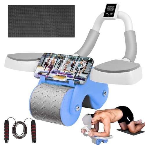 Flintronic Ab Roller Wheel per Core Trainer, 2023 Nuovo Ruota Addominali, Wheel Roller, Ruota a Rullo per Addestratore Addominali Fitness per Allenamento in Palestra, con Timer/Stuoia/Porta Cellulare