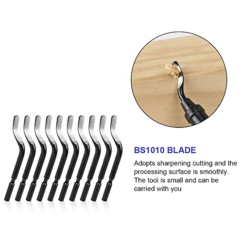 【SET DI ATTREZZI DI SBAVATURA】: Vieni con impugnatura in alluminio di precisione e lame per sbavatura da 11 pezzi, lame HSS BS1010 La lama smussata a 40 gradi rotante a 360 ° è ideale per tagliare bordi di fori rotondi, fori profondi, bordi dritti, bordi curvi, scanalature.
