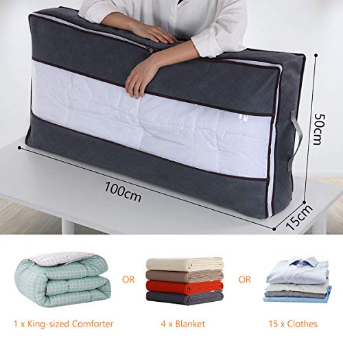 【75L GRANDE CAPACITÀ】: Con le dimensioni di 100x50x15CM, la nostra custodia per trapunte è abbastanza grande per trapunte, coperte, cuscini, giocattoli, giacche o altri vestiti. Lascia che il tuo armadio sia pulito e ordinato.
