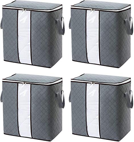 Flintronic Scatole per Armadio, Borsa Porta Abiti Grande capacità Pieghevole con Manico Ispessito And Finestra Trasparente, Utilizzato per Trapunte Coperte Biancheria da Letto, 4 Pezzi(Grigio)