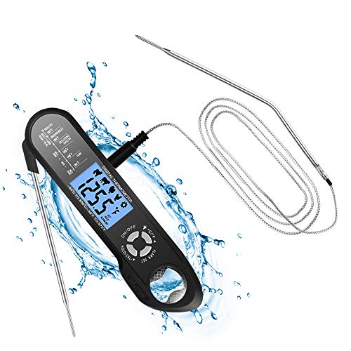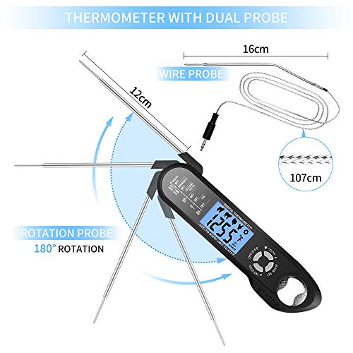 Flintronic Termometro Cucina, Digitale Termometro da Cucina con Lettura Istantanea con 2 Acciaio Inossidabile Sonda, Magnete, Schermo LCD, Meglio per BBQ Carne, Griglia, Latte e Acqua del Bagno