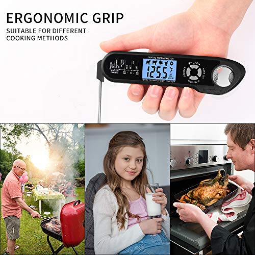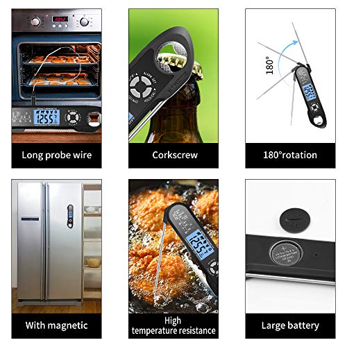 【Ultra veloce e preciso】 Il termometro a lettura istantanea rileva la temperatura in 2-3 secondi, l'ampio intervallo di misurazione è -58 ° F ~ 572 ° F (-50 ℃ ~ 300 ℃), accurato +/- 2 ℉ (+/- 1 ℃) tra -4 ℉ ~ 302 ℉ (-20 ℃ ~ 150 ℃). Con il luminoso display LCD retroilluminato, puoi leggere facilmente la temperatura anche al buio, perfetto per enormi tacchini, bistecche, pane, marmellata, cioccolato, barbecue, latte caldo e acqua del bagno.