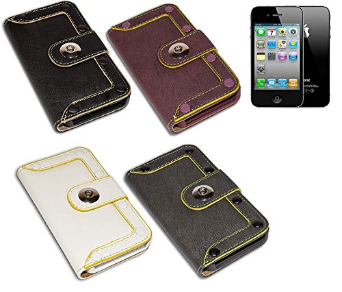 FLIP COVER CASE CUSTODIA PORTAFOGLIO INTARSIATA COMPATIBILE PER APPLE iPHONE 4 BORCHIE VIOLA