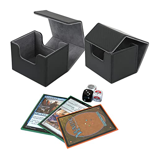 Flip Deck Case, Magnetic Side Flip Box + Deck Divider 100 PU Cards Box für Trading Cards Sammeln und Scambio (Orizzontal Schwarzgrau)