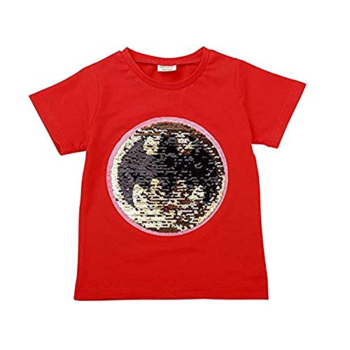 Flip Sequin Magic T-Shirt in Cotone Manica Corta Tees Tops Boys Kids (Taglia 3-8) (120, Red)