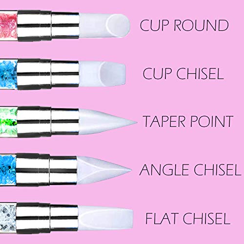 Flirtare - 5 pennelli per nail art con doppia testa in silicone e acrilico, per disegni e applicazione di polveri
