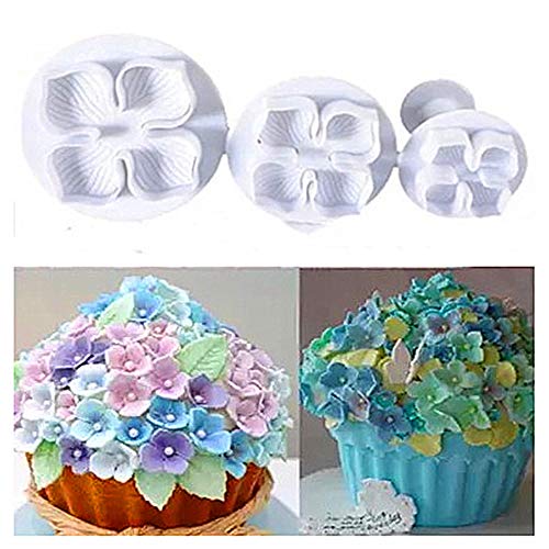 Flissy - Set di 3 stampi per dolci, biscotti e decorazioni in glassa, motivo: Hydrangea