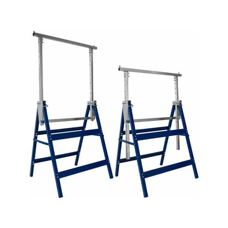 Questi cavalletti sono la scelta ideale per lavorare. Grazie ai ganci di arresto ribaltabili che prevengono lo scivolamento, lavorare è molto sicuro. Si possono anche ripiegare ed ocupano poco spazio. Sono molto practici, sono rigolabili in 7 altezze. Vantaggi del prodotto: Regolabile in altezza Ganci di sicurezza. Prevengono lo scivolamento In acciaio rivestito a polvere Sbarre per regolare l'altezza zincate Supporto antiscivolo Ripiegabile Dati tecnici: Misure: lunghezza 69cm, larghezza 57, altezza 81cm Altezza: 81 - 130 cm Portata di 200kg per cavalletto Materiale: acciaio rivestito a polvere, Sbarre per regolare l'altezza zincate Colore: blu, colore zinco Contenuto della fornitura: Set 2 x Cavalletti pieghevole e regolabile max. 200kg Materiale di montaggio Istruzioni d'uso