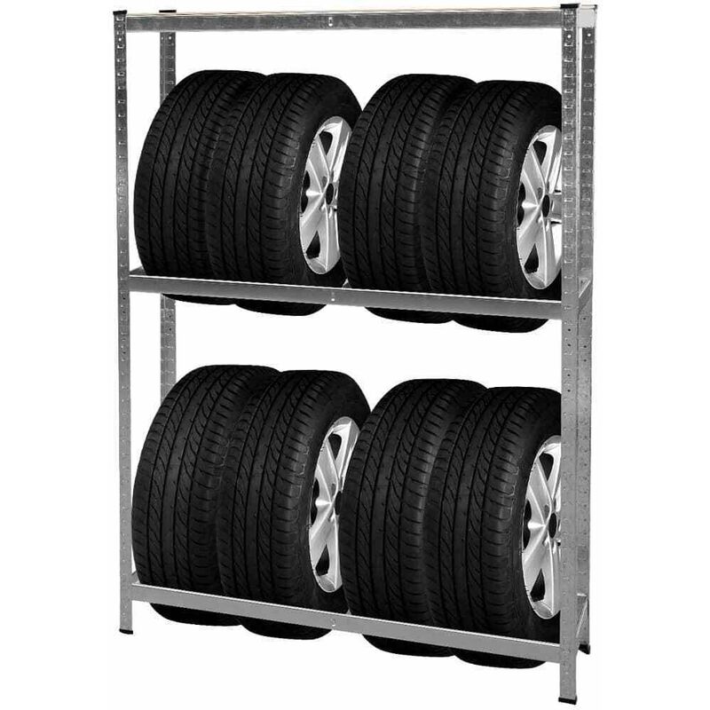Più ordine nel garage! Questo scaffale d'alta portata con una capacità totale di 795kg e una capacità di carico a ogni livelli di 265 kg e perfetto per i tuoi pneumatici e per organizzare i tuoi oggetti. Il livello superiore è costituito da un pavimento in robusto materiale MDF. Lo scaffale viene rapidamente assemblato tramite connettori e può contenere fino a 8 pneumatici nei due livelli inferiori. La struttura della mensola è completamente zincata e ha una robusta struttura in acciaio . Vantaggi del prodotto: Due ripiani inferiori con spazio per un massimo di 8 pneumatici Ripiano superiore aggiuntivo Sistema di montaggio ad innesto - semplice e rapido Adatto per il montaggio a parete Costruzione robusta in acciaio - completamente zincata Ripiani regolabili individualmente in altezza Piedi in plastica Dati tecnici: Dimensioni (AxLxP): 180x120x40cm Numero di livelli totale: 3 Materiale piano: MDF Materiale telaio: acciaio completamente zincato Capacità di carico per livello: 265 kg