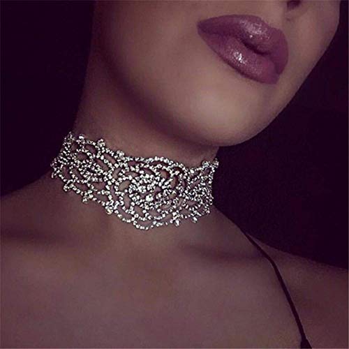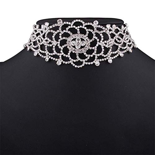 Fliyeong - Collana girocollo da donna con fiore intagliato e strass, pratica e popolare