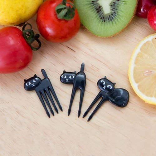 Fliyeong 6 pz divertente cartone animato gatto nero frutta Picks bambini Bento Lunch Box forchette decorazione casa nuovo rilasciato