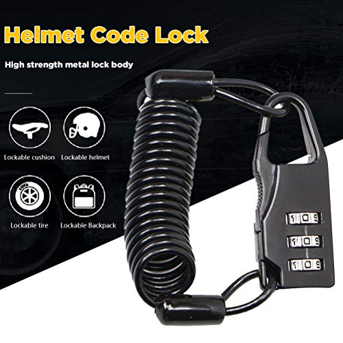 Fliyy - Lucchetto portatile per bicicletta, con combinazione a 3 cifre, antifurto per bicicletta, per casco da viaggio, colore nero