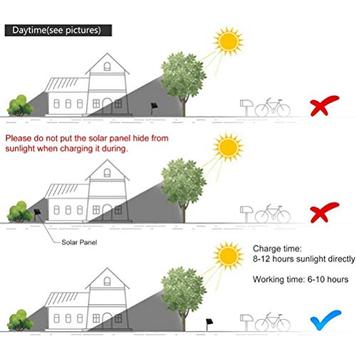 Ecologica e durevole: la lampada solare deve essere caricata solo per 6-8 ore durante il giorno, e può essere utilizzata fino a 10 ore dopo essere stata completamente carica. È completamente alimentato da energia solare. Si accende automaticamente di notte e si spegne durante il giorno.