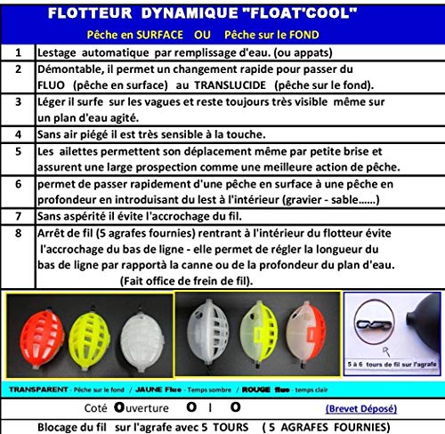 Sollevamento automatico con riempimento d'acqua. (o appate) Smontabile, permette un cambio rapido per passare dal Fluo (pesca in superficie) al translucido (pesca sul fondo).