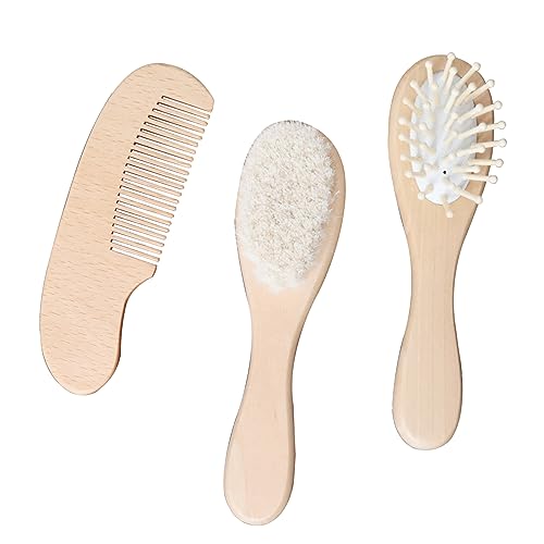 Spazzole con setole morbide e naturali di capra: Il nostro set di tre spazzole con setole morbide è stato appositamente progettato per il tuo bambino e utilizza setole di capra delicate e naturali per prendersi cura dolcemente del delicato cuoio capelluto del tuo bambino, offrendo un'esperienza di cura amorevole.