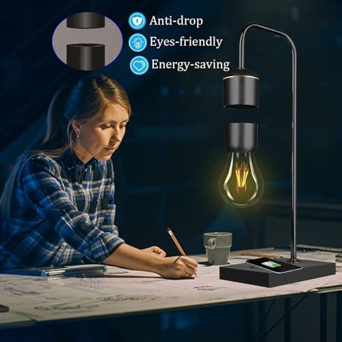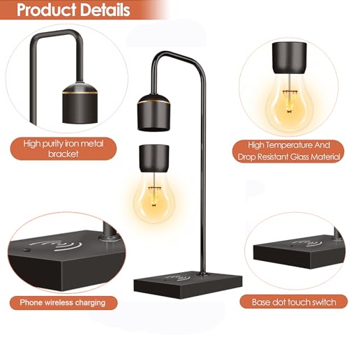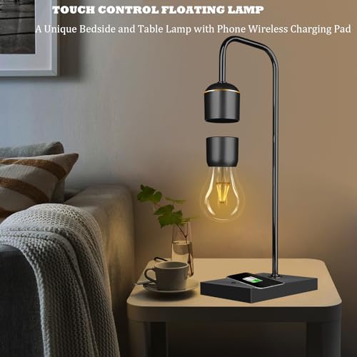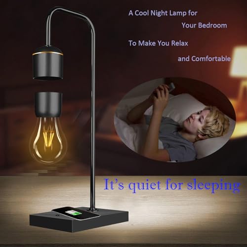 Floatidea Levitating Light Bulb with Wireless Phone Charger Plastic Black Base Electromagnet Floating Lamp Antigravity LED Night Light Table Lamps Kit Bedroom Decorations Office Gifts
