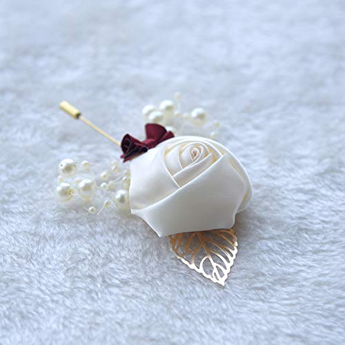 Floatofly Fiori Artificiali Multicolore Fiori Artificiali Multistrato, Fiore Finto Perla Finta Fiore All'occhiello Cerimonia di Nozze Sposa Sposo Corpetto Spilla Rosso