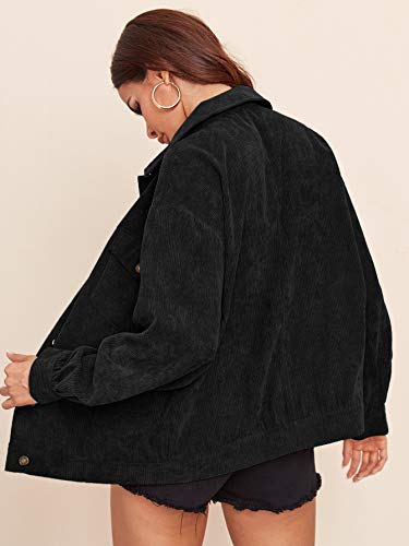 Floerns - Giacca da donna a maniche lunghe, con bottoni in velluto a coste - nero - Large