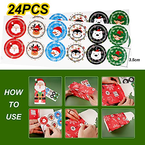 CONFEZIONE: 24 pezzi di sacchetti di carta regalo per feste Natale + 24pz adesivi natalizi chiudipacco. Ci sono 6 modelli diversi carini (4 pezzi di sacchetti di cartone regalo natale per ogni modello).