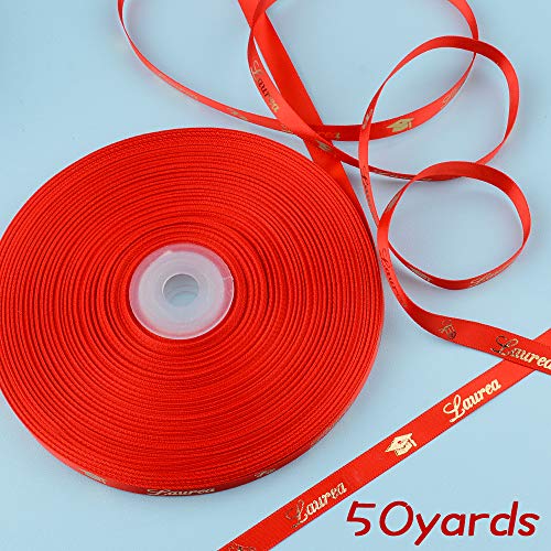 FLOFIA 45mt Nastro Laurea Raso Rosso per Bomboniere 50 Iarda x 9mm Nastro Doppio Raso con Scritta Laurea per Decorazione Bomboniere Laurea