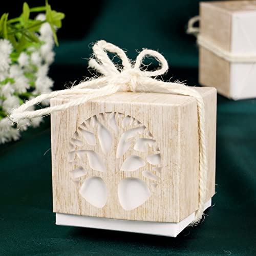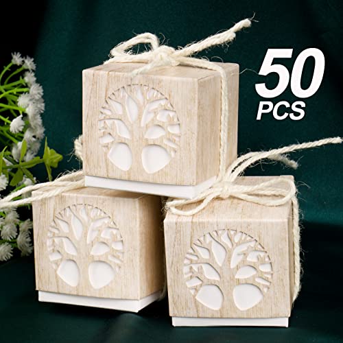 FLOFIA 50pz Scatole Albero della Vita Bomboniere Portaconfetti in Carta Kraft per Confetti Caramella Regalo Scatole Fai da Te per Prima Comunione Battesimo Matrimonio Laurea Nascita Cresima