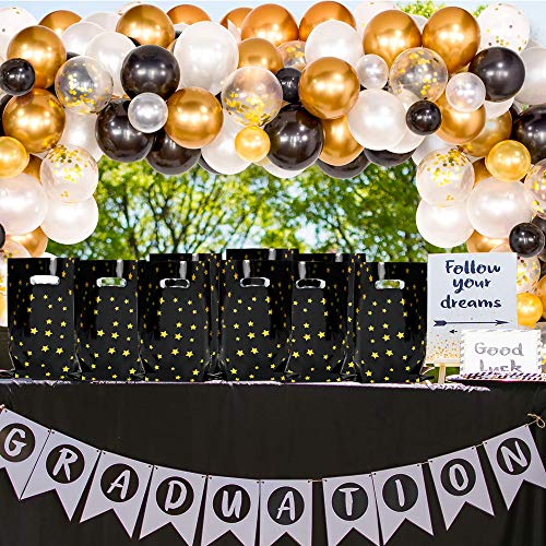 FLOFIA 60pz Sacchetti Regalo in Plastica Sacchetti per Feste con Manici Portaconfetti Borse Busta Confenzione Plastica per Caramelle Biscotti Regalo Festa Compleanno Matrimonio Bomboniere Stelle Nero