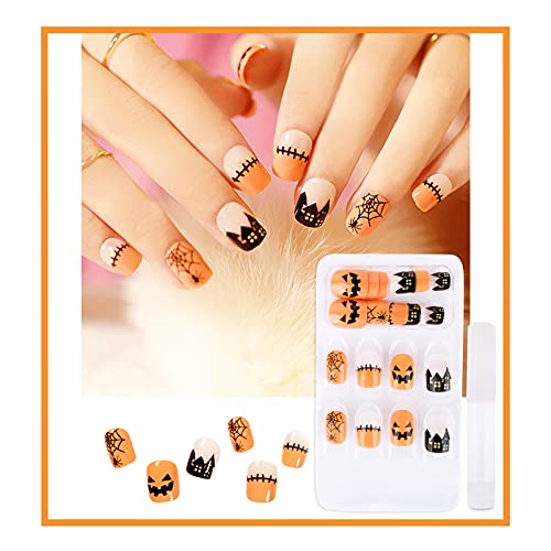 CONFEZIONE: 72 pz (3 scatole) unghie finte colorate corte in stile di halloween. Ci sono 3 modelli in totale, ogni scatola include 24 pezzi di unghie artifiali, ideali per decorare le unghie durante vigilia d'ognissanti o la festa di Halloween.