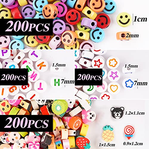 CONFEZIONE: 800pz perline colorate miste: 200pz perline animali frutto smile + 200pz perline lettere alfabeto + 200pz perline smile sorrido + 200pz perline con disegni misti + 1 x filo elastico 10 metri.