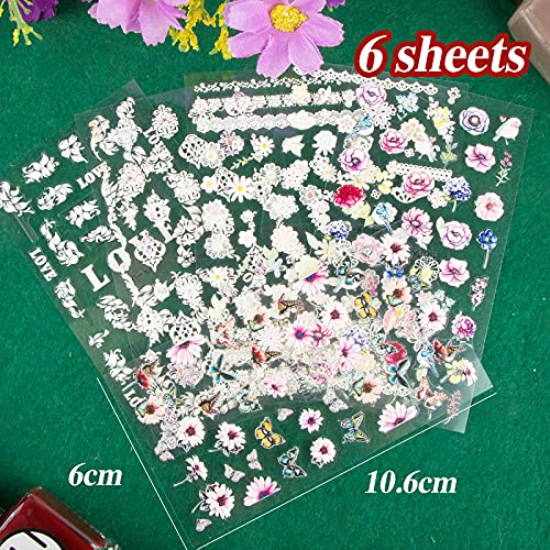CONFEZIONE: 6 fogli di adesivi unghie nail stickers misti floreali per decorazione unghie nail art fai da te. Tutti i 6 fogli sono di disegni diversi, ci sono quasi 300+ adesivi per unghie, molto ideali per la decorazione delle unghie.