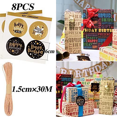 REGALO SPECIALE: Questi fogli carta da regalo sono dotati delle parole “happy birthday” (buon compleanno), sono confezionati con adesivi chiudipacco carini e filo di carta naturale, possono rendere il tuo regalo più speciale.
