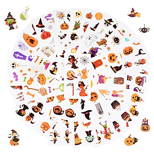 FLOFIA 30 Fogli Tatuaggi Temporanei Halloween Gadget Tatuaggi Halloween Zucca Strega Ragno Pipistrello Tatuaggi Halloween Cartone Animato per Bambini Ragazze Ragzzi Festa di Hallowee