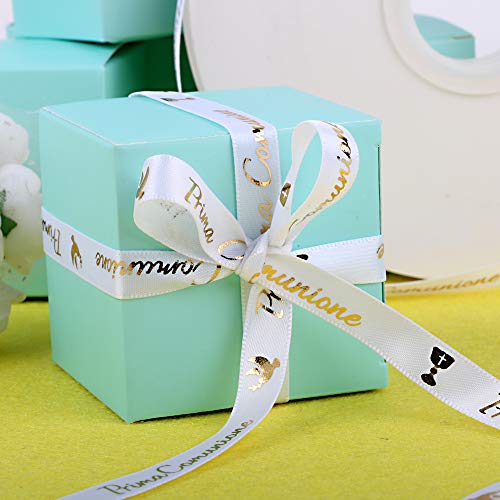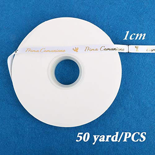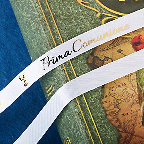 Il nastro è dotato di scritta dorata “Prima Comunione”, molto ideale per decorare le bomboniere, regalo, scatole, cartoline, biglietti d'auguri della prima comunione.