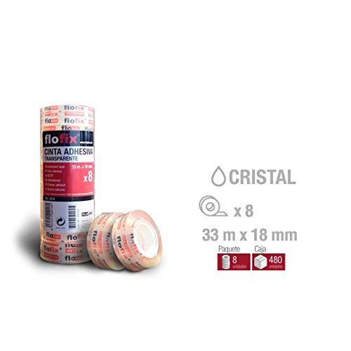 FLOFIX 8 rotoli di nastro adesivo - trasparente vetro 33 m x 18 mm taglio facile