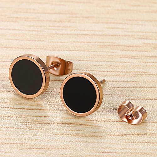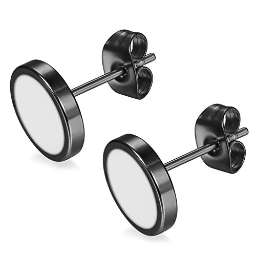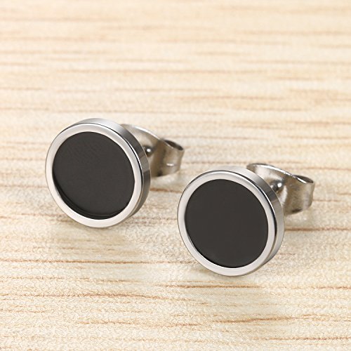 Flongo 10mm Orecchini uomo donna, Argenteo nero orecchini in acciaio inossidabile, Piccoli orecchini rotondi stile Hip Hop 4 coppie