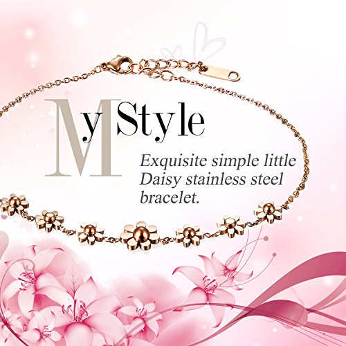 Flongo 3pcs Bracciale da Donna in Acciaio Inossidabile Argenteo, Braccialetto di Fiori Margherite Cavigliera Elegante Adorabile, 22 +3cm Regalo delle Donne
